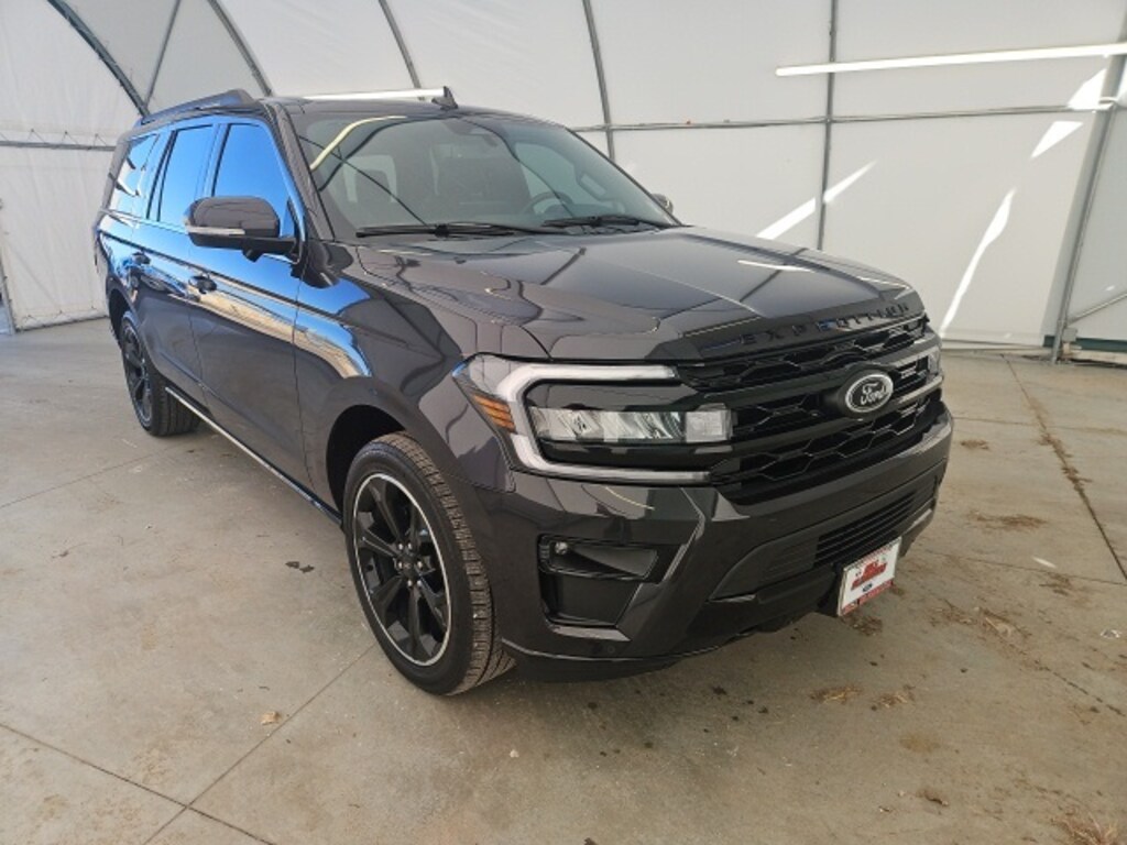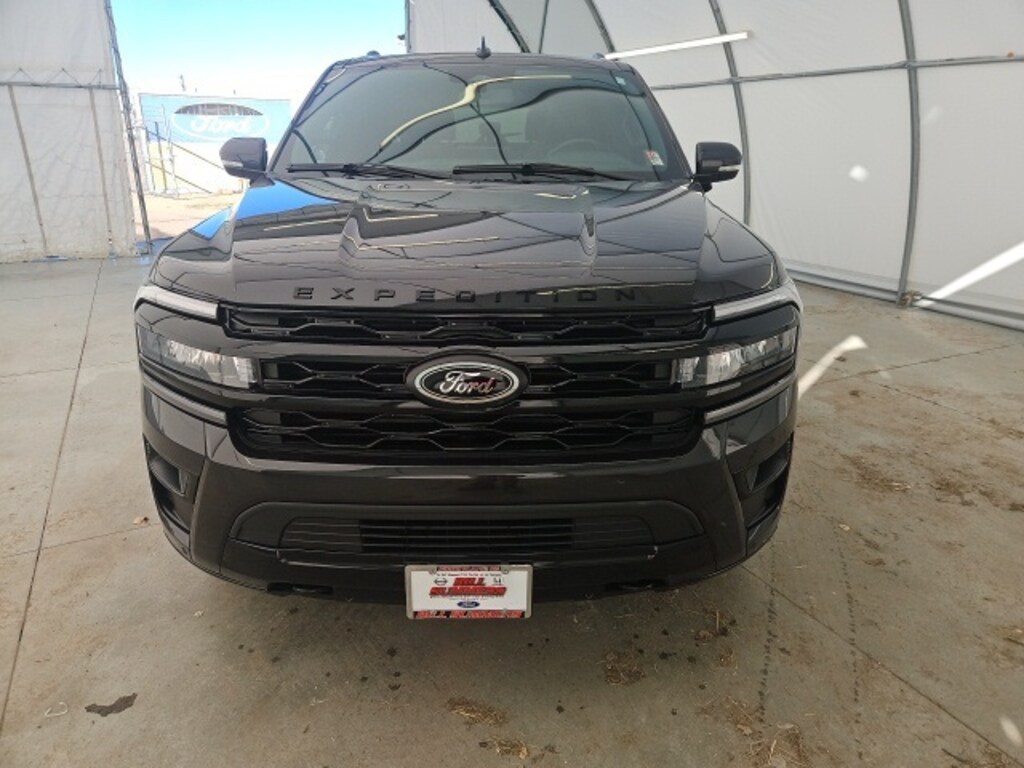 12 Speakers, 15.5" LCD Capacitive Touchscreen, 1st & 2nd Row Floor Mats w/Logo, 26mm Engine Radiator, 360-Degree Camera w/Split View, 360-Degree Camera w/Trailer Reverse Guidance, 3rd row seats: split-bench, 4-Wheel Disc Brakes, ABS brakes, Adjustable pedals, Air Conditioning, Alloy wheels, AM/FM radio: SiriusXM with 360L, Auto High-beam Headlights, Auto-dimming door mirrors, Auto-dimming Rear-View mirror, Automatic temperature control, Black Headlamp and Fog Lamp Bezels, Black Limited Tailgate Badge, Black Rear Bumper, Black Roof Rack Side Rails, Body Color Door Handles, Brake assist, Bumpers: body-color, Compass, Connected Navigation, Delay-off headlights, Driver door bin, Driver vanity mirror, Dual front impact airbags, Dual front side impact airbags, Ebony Black Bar and Mesh Grille, Ebony Black Power Deployable Running Boards, Ebony Black Tailgate Applique, Electronic Stability Control, Emergency communication system: SYNC 4 911 Assist, Equipment Group 303A Stealth Package, Expedition Lettering on Hood, Exterior Parking Camera Rear, Four wheel independent suspension, Front anti-roll bar, Front Bucket Seats, Front Center Armrest, Front dual zone A/C, Front fog lights, Front reading lights, Front Tow Hooks, Fully automatic headlights, Garage door transmitter, Heated & Ventilated Leather Front Captain's Chairs, Heated door mirrors, Heated front seats, Heated rear seats, Heated steering wheel, Heated/Ventilated Lthr Front Captain's Chairs (A), Heavy-Duty Trailer Tow Package, Illuminated entry, Instrument Panel Cluster, Integrated Trailer Brake Controller, Leather steering wheel, LED Taillamp w/Black Bezels, Low tire pressure warning, Memory seat, Navigation system: Connected Navigation, Occupant sensing airbag, Outside temperature display, Overhead airbag, Overhead console, Panic alarm, Passenger door bin, Passenger vanity mirror, Pedal memory, Power door mirrors, Power driver seat, Power Liftgate, Power moonroof, Power passenger seat, Power steering, Power windows, Power-Folding Sideview Mirrors w/Autofold, Pro Trailer Backup Assist, Radio data system, Radio: B&O Sound System by Bang & Olufsen, Rain sensing wipers, Rear air conditioning, Rear anti-roll bar, Rear reading lights, Rear window defroster, Rear window wiper, Reclining 3rd row seat, Remote keyless entry, Reverse Brake Assist, Security system, SiriusXM w/360L, Speed control, Speed-sensing steering, Speed-Sensitive Wipers, Split folding rear seat, Spoiler, Sport Center Console, Sport Tuned Suspension, Sport-Tuned Suspension, Stealth Edition Package, Steering wheel memory, Steering wheel mounted audio controls, SYNC 4 w/Enhanced Voice Recognition, SYNC 4A w/Enhanced Voice Recognition, Tachometer, Telescoping steering wheel, Tilt steering wheel, Traction control, Trip computer, Turn signal indicator mirrors, Variably intermittent wipers, Ventilated front seats, Voltmeter, Wheels: 20" Bright Machined Aluminum, Wheels: 22" Premium Black-Painted Aluminum.