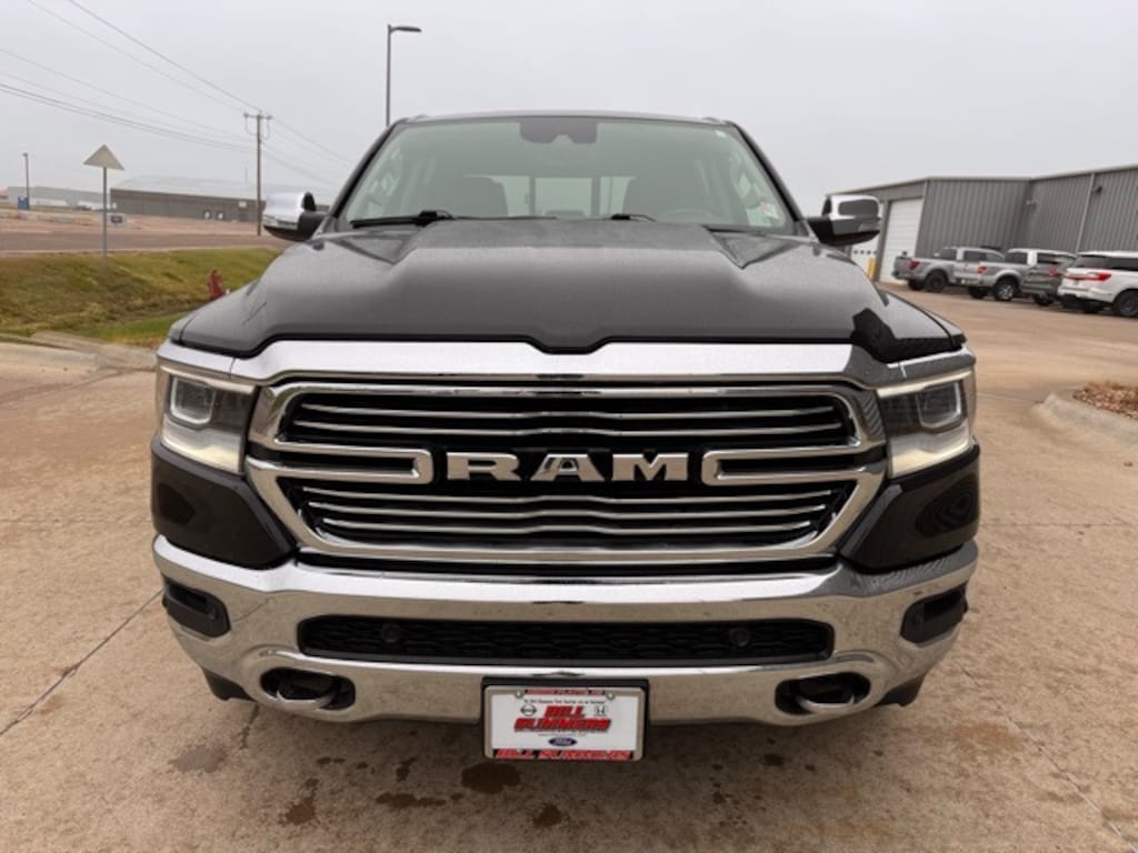 #1 Seat Foam Cushion, 10 Speakers, 2nd Row In Floor Storage Bins, 3 Rear Seat Head Restraints, 3.21 Rear Axle Ratio, 4 Way Front Headrests, 4-Wheel Disc Brakes, 48V Belt Starter Generator, 4G LTE Wi-Fi Hot Spot, 8.4" Touchscreen Display, ABS brakes, Adjustable pedals, Air Conditioning, All R1 High Radios, All Radio Equipped Vehicles, Alloy wheels, AM/FM radio: SiriusXM, Apple CarPlay, Apple CarPlay/Android Auto, Audio memory, Auto High Beam Headlamp Control, Auto-dimming door mirrors, Auto-Dimming Exterior Driver Mirror, Auto-dimming Rear-View mirror, Automatic temperature control, Blind Spot & Cross Path Detection, Brake assist, Bright Day Light Opening Moldings, Bumpers: chrome, Chrome Appearance Group, Chrome Exterior Mirrors, Chrome Tow Hooks, Compass, Connected Travel & Traffic Services, Connectivity - US/Canada, Convex Wide-Angle Mirror Insert, Delay-off headlights, Disassociated Touchscreen Display, Driver door bin, Driver Seat Memory, Driver vanity mirror, Dual front impact airbags, Dual front side impact airbags, Electronic Stability Control, Exterior Mirrors Courtesy Lamps, Exterior Mirrors w/Heating Element, Exterior Mirrors w/Memory, Exterior Mirrors w/Supplemental Signals, Foam Bottle Insert (Door Trim Panel), For Details, Visit DriveUconnect.com, For More Info, Call 800-643-2112, Front anti-roll bar, Front Center Armrest w/Storage, Front dual zone A/C, Front fog lights, Front License Plate Bracket, Front reading lights, Front Seat Back Map Pockets, Front wheel independent suspension, Fully automatic headlights, Garage door transmitter, Global Telematics Box Module (TBM), Google Android Auto, GPS Antenna Input, GPS Navigation, HD Radio, Heated door mirrors, Heated Front Seats, Heated front seats, Heated Steering Wheel, Heated steering wheel, Heavy-Duty Engine Cooling, Illuminated entry, Integrated Center Stack Radio, Integrated Voice Command w/Bluetooth, Laramie Level I Equipment Group, Leather steering wheel, Leather Trim 40/20/40 Bench Seat, Low tire pressure warning, Manufacturer's Statement of Origin, Memory seat, Occupant sensing airbag, Outside temperature display, Overhead airbag, Overhead console, Panic alarm, ParkSense Front/Rear Park Assist w/Stop, ParkView Rear Back-Up Camera, Passenger door bin, Passenger vanity mirror, Pedal memory, Power 2-Way Driver Lumbar Adjust, Power 2-Way Passenger Lumbar Adjust, Power 8-Way Driver & Passenger Seats, Power door mirrors, Power driver seat, Power passenger seat, Power steering, Power windows, Power-Folding Mirrors, Quick Order Package 25H Laramie, Radio data system, Radio: Uconnect 5 Nav w/8.4" Display, Radio: Uconnect 5 W w/8.4" Display, Rain Sensitive Windshield Wipers, Rear 60/40 Folding Seat, Rear anti-roll bar, Rear seat center armrest, Rear step bumper, Rear Underseat Compartment Storage (DISC), Rear Wheelhouse Liners, Rear window defroster, Remote keyless entry, Remote Tailgate Release, Security system, SiriusXM Radio Service, SiriusXM w/360L, Speed control, Split folding rear seat, Steering wheel mounted audio controls, Tachometer, Telescoping steering wheel, Tilt steering wheel, Traction control, Trailer Brake Control, Trip computer, Turn signal indicator mirrors, USB Host Flip, Variably intermittent wipers, Ventilated Front Seats, Ventilated front seats, Voltmeter, Wheel to Wheel Side Steps, Wheels: 18" x 8" Aluminum Base Painted, Wheels: 20" x 9" Premium Paint/Polished.